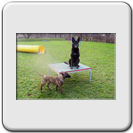- tolle Sachen wie: "Außen" (Das heißt, ich soll um etwas - zum Beispiel einen Baum - herumlaufen. Allerdings muss ich dabei darauf achten, ob Frauchen ein Umlaufen von Rechts oder Links möchte, denn wenn ich es verkehrt mache, gibt es kein Leckerchen). Auch "Tunnel" (das Tunnelllaufen) ist jetzt schwieriger. Nur der richtige Eingang, auf den Frauchen zeigt, zählt. Beim "Touch" stellt Frauchen jetzt manchmal mehrere Pylonen auf. Ich soll dann nur die anstubsen, zu der Frauchen guckt.