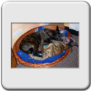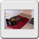 Manchmal glaube ich, ein Déjà-vu zu erleben. Da liegen wieder zwei (ein dunklerer und ein hellerer "Streifenhund") auf dem Teppich oder im Körbchen und spielen "Schnauzenfechten". Benno ähnelt mit seinem ruhigen und freundlichen Verhalten gegenüber Jarik beinahe meinem Basko. Jarik verhält sich hinsichtlich seiner Arbeitsfreude und seines Interesses an meiner Person wie Copper, orientiert sich auch bei Spaziergängen oft an Benno, so dass die beiden, wie einst Basko und Klein-Copper durch die Welt ziehen.