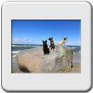 "Nun ist unser schöner Uuurlaub wieder vorbei. Ich konnte noch einmal richtig mitmachen, meine hinteren Pfoten haben tapfer durchgehalten. Natürlich waren wir wieder am großen Wasser, sind geschwommen und gewandert. Neben unserer Hütte wohnte diesmal einige Tage eine nette Hundedame. Sie war aber sehr schüchtern, selbst ich durfte sie nur ganz vorsichtig beschnüffeln. Benno wurde von ihr natürlich sofort lautstark (hinter Herrchens Beinen versteckt) abgewiesen.