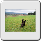 Dann üben wir noch ganz merkwürdige Dinge. Stellt Euch vor, Frauchen trampelt über einen Acker und legt dort lauter Leckerli hin. Dann sagt sie zu mir "Suuuch" und ich schnüffel mich die Freßstraße entlang. Was das wohl einmal werden soll?